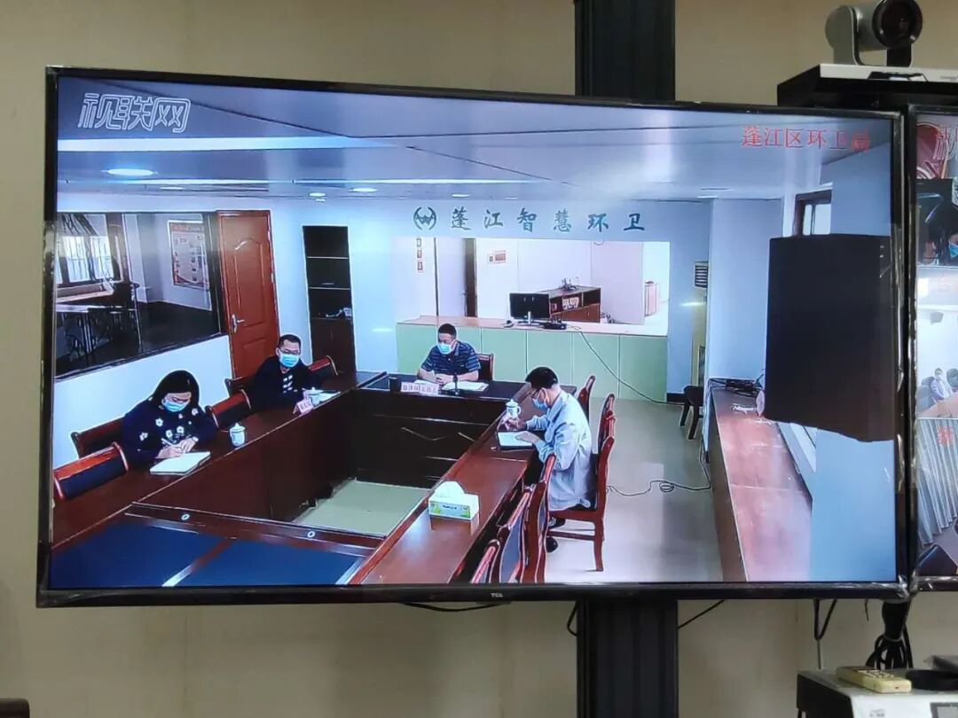 ▲全市城管系统、15个镇(街)通过视联网齐聚“云”端