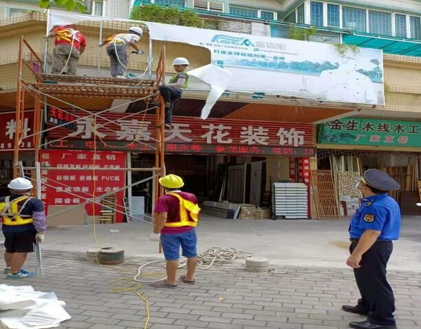 二、广泛宣传,摸底排查,制定工作清单。11月份,市城市管理和综合执法局组织执法人员对辖区主次干道、商圈、社区等重点路段存在安全隐患的残旧、弃置广告及建构(筑)物进行全面‘体检’,全面梳理并制定户外广告负面清单。同时广泛开展法律宣传,与违规设置广告牌的户外广告设施产权人积极沟通协调,讲解户外广告专项整治的必要性与重要性,引导群众自觉配合,为专项整治行动营造良好的舆论氛围。