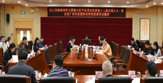 贯彻习近平总书记参加十三届全国人大一次会议广东代表团审议时的重要讲话精神,传达学习省委、市委关于学习贯彻习近平总书记重要讲话精神的工作要求,研究部署贯彻落实措施。市财政局班子成员、党支部书记和各科室(属下单位)负责人参加了会议。