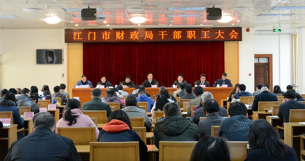 为深入学习贯彻市第十三次党代会精神和市委书记林应武同志对财政工作和2017年预算编制的指示精神,江门市财政局在迅速召开局党组会议及全市财政局长座谈会上相继作了学习传达的基础上,于12月29日召开全局干部职工大会进行专题学习传达。