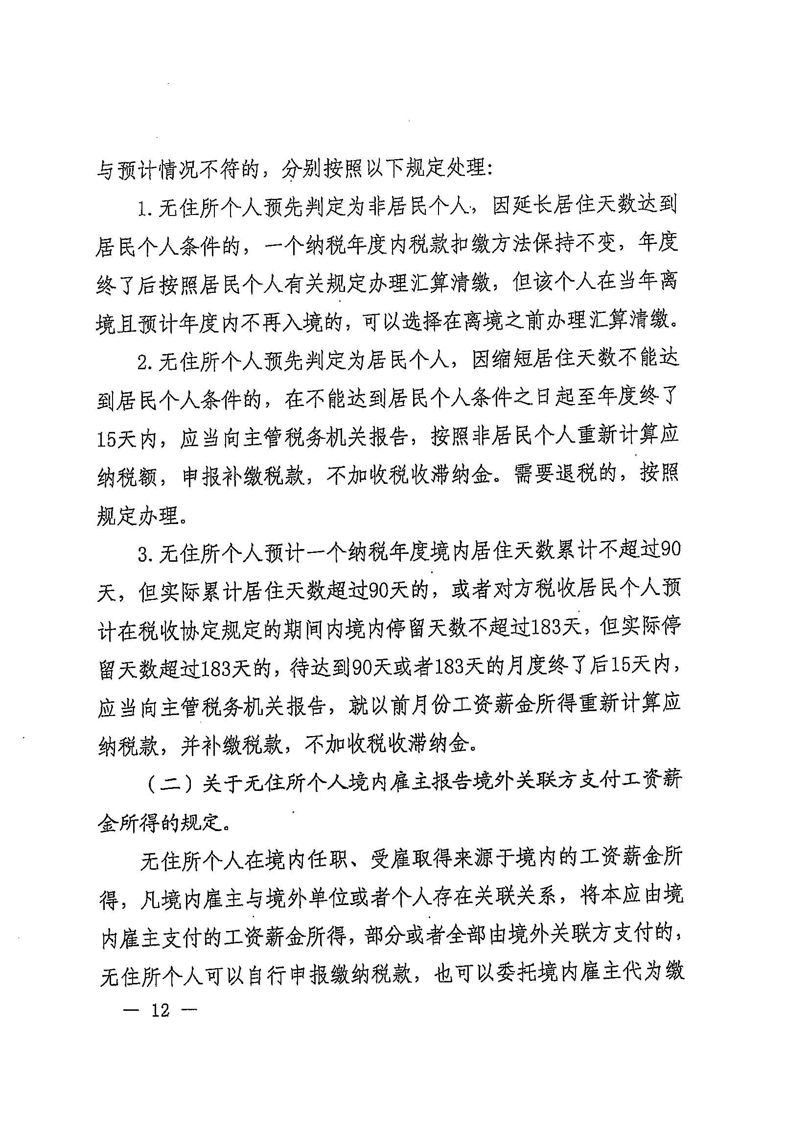 财政部 税务总局关于非居民个人和无住所居民个人有关个人所得税政策的公告