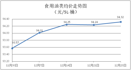 食用油类商品价格稳中微涨。所监测的食用油(5L装)商品价格波动情况为3涨6平,综合零售均价为每桶94.32元,环比上涨0.09%。其中:鲁花花生油、金龙鱼调和油零售均价分别为每桶156.42元、70.48元,环比分别持平、上涨0.51%。
