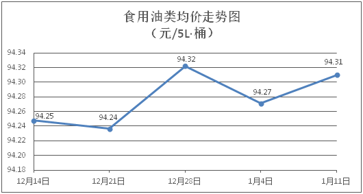 食用油类商品价格稳中微涨。所监测的食用油(5L装)商品价格波动情况为4涨5平,综合零售均价为每桶94.31元,环比上涨0.04%。其中:鲁花花生油、金龙鱼调和油零售均价分别为每桶155.83元、70.83元,环比分别上涨0.05%、持平。