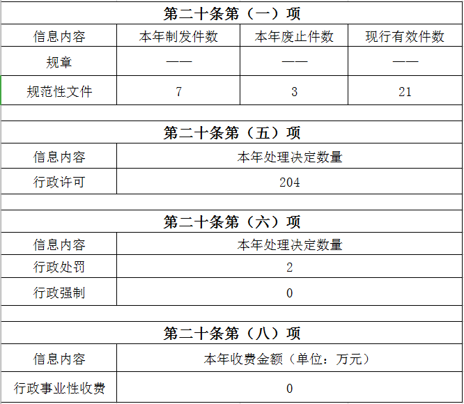 (一)主动公开方面。聚焦“十四五”专项规划、节能降耗、价格收费、公共服务、固定资产投资、区域战略、产业发展、行政许可、粮食安全等重点领域,全年通过门户网站公开政府信息1023条(包含工作动态105条、规范性文件7项、行政许可结果204项、行政处罚结果2项等)。