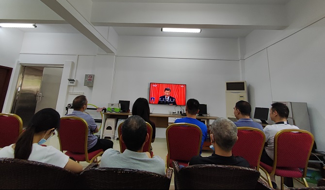 江门市机关事务管理局及下属事业单位全体党员干部集体观看了开幕会现场直播,认真聆听了习近平总书记代表第十九届中央委员会向大会作的报告。