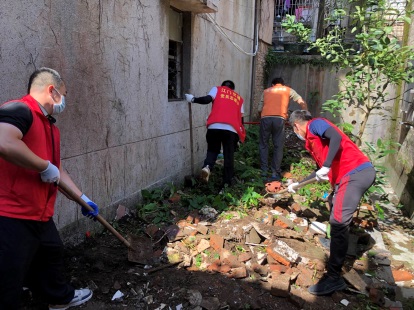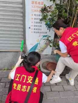 市交通运输局党员突击队队员深入凤潮社区开展灭蚊攻坚行动,清理房前屋后杂草杂物、清运垃圾;开展防蚊灭蚊消杀、清理积水等,全方位铲除蚊媒孳生土壤,从源头阻断蚊虫滋生。