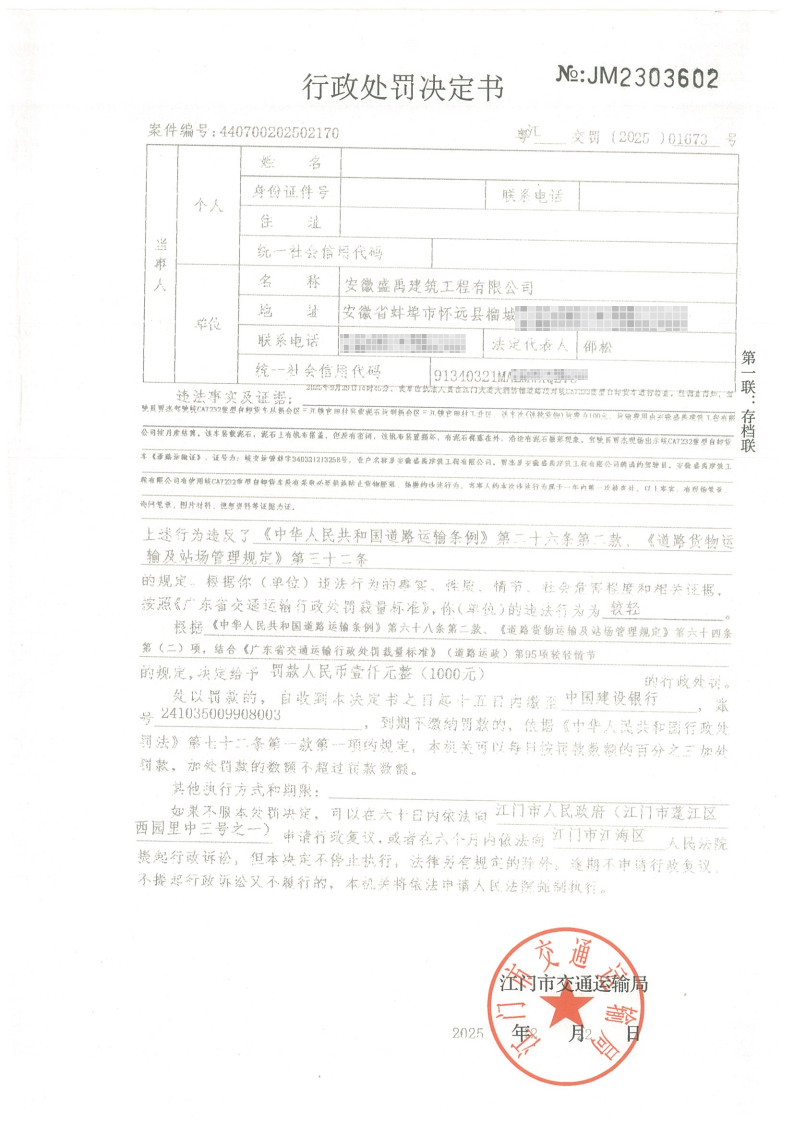 你(单位)因违反交通运输行政管理法规,本机关已作出行政处罚决定和责令改正通知书(具体内容详见附件)。依照《中华人民共和国民事诉讼法》第九十五条的规定,因无法以其他方式向你(单位)送达,现向你(单位)公告送达《行政处罚决定书》和《责令改正通知书》。自发出公告之日起,经过30日即视为送达。
