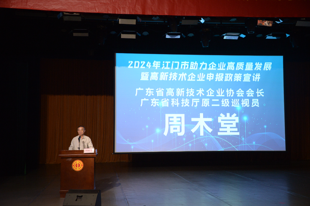 为贯彻落实广东省、江门市高质量发展大会精神,深入实施创新驱动发展战略,全力推进“百千万工程”,加强高新技术企业培育工作,3月29日,江门市科学技术局联合广东省高新技术企业协会、江门市总工会、江门市市场监督管理局(知识产权局)、国家税务总局江门市税务局在江门市工人会堂举办了2024年江门市助力企业高质量发展暨高新技术企业申报政策宣讲活动,吸引200多名企业代表参加。