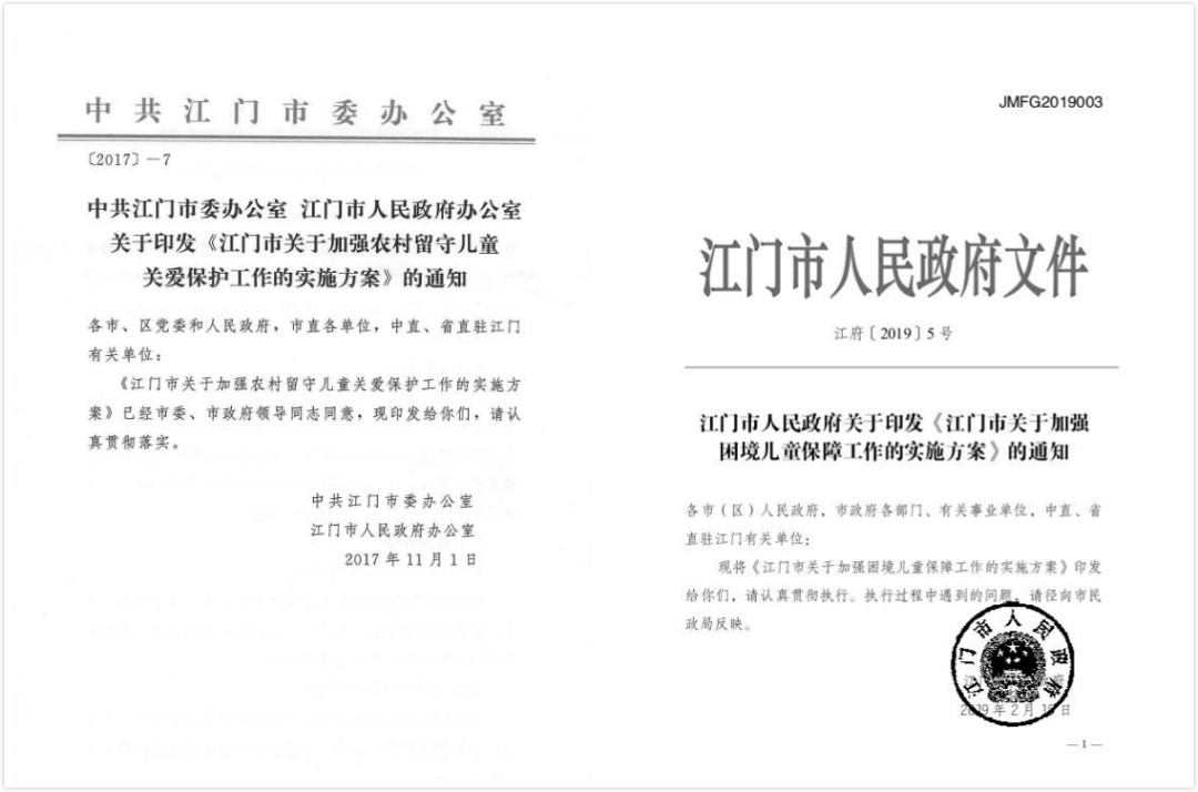大礼包四:【关怀】关注孩子内心需求 硬件设施的改善,能让孩子们在物质上得到满足。然而,孩子们往往更需要精神上的陪伴与支持。 开平市大沙镇的有1000多名小学生,而有逾300人的儿童存在不同程度的留守情况。“这些留守儿童大都因亲情断层缺少关爱,比较内向少言,会自闭自卑,不合群,躲避生人。同时,性教育缺失也在这个儿童群体里普遍体现,有的小姑娘到了生理期甚至都不知道该怎么办,十分需要正确的引导。”开平市大沙镇留守儿童服务站的晴海天社工黄少明说。 从2014年起,开平市民政局陆续建立起5个农村留守儿童服务站,为了守护农村留守儿童健康成长而发力。“我们针对留守儿童的心理、生活问题开展各种活动和心理辅导,把留守儿童服务站打造成为留守儿童的‘第二个家’,使当地留守儿童有人爱,有人陪,有人护,更有事做。”黄少明介绍,在社工的帮助下,不少孩子变得越来越阳光自信。 近年来,江门市民政局牵头建立了江门市农村留守儿童关爱保护和困境儿童保障工作联席会议制度,提请市委市政府先后出台了《江门市农村留守儿童保护工作实施方案》《江门市关于加强困境儿童保障工作的实施方案》等政策文件,并联合社工机构、慈善团体等组织开展困境儿童爱心夏令营等活动,统筹推进困境儿童、农村留守儿童关爱保护工作。 大礼包五:【保障】构建织密兜底网 近年来,我市民政部门聚焦困境儿童生活保障,不断健全大儿童福利保障网络,持续加大保障力度。 据了解,江门市民政局2013年起建立全市孤儿和艾滋病病毒感染儿童基本生活费自然增长机制,不断提升孤儿和艾滋病病毒感染儿童供养标准。2019年实现孤儿和艾滋病病毒感染儿童集中供养1990元/人/月、分散供养1240元/人/月标准。2020年以来实现集中供养2200元/人/月、分散供养1550元/人/月标准,并于年内进一步提高分散供养孤儿标准至1800元/人/月,加强分散供养孤儿生活保障。 此外,民政部门进一步提高事实无人抚养儿童生活保障标准,参照分散供养孤儿发放基本生活补助,加大帮扶力度。落实残疾儿童两项补贴,标准分别提高到每人每月175元和235元。 我市民政部门送出的这5个与广大困难儿童利益密切相关的“大礼包”,是新时代困难儿童福利工作迈向更加精细化的体现,将更有效保障困难儿童享受更有品质、更受关爱的生活。