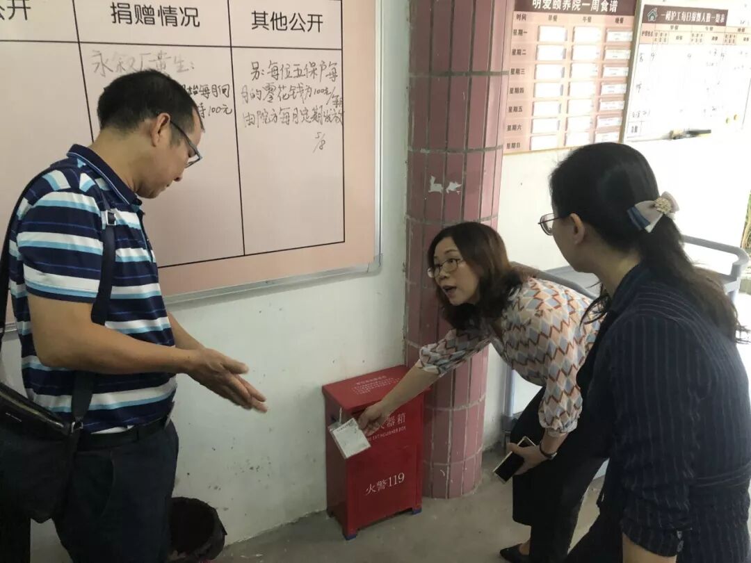 近日,市民政局党组成员、副局长林雁冰带队围绕“不忘初心、牢记使命”主题教育、消防安全、扫黑除恶等专项工作对鹤山市进行督导、调研,实地检查沙坪街道、雅瑶镇等地多家养老机构,鹤山市民政局副局长陈自力参加检查。