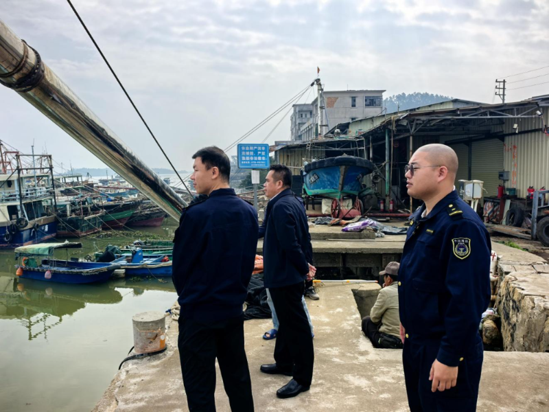 2025年12月31日,市海洋综合执法支队支队长汪炳康到台山市广海镇开展元旦节前渔船渔港安全生产督导检查。
