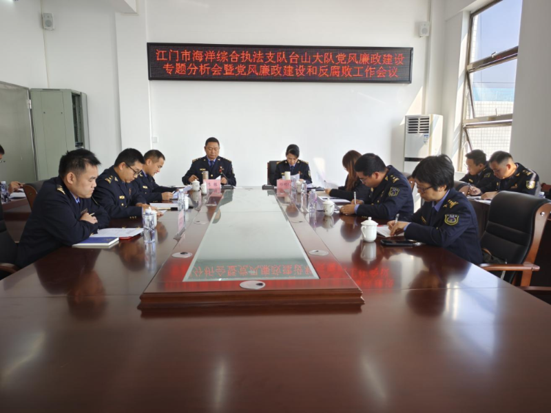 2026年1月5日,市海洋综合执法支队党组书记、政委邓明芳到台山市出席台山大队党风廉政建设专题分析会暨党风廉政建设和反腐败工作会议,会上对台山大队党风廉政建设工作提出要求。