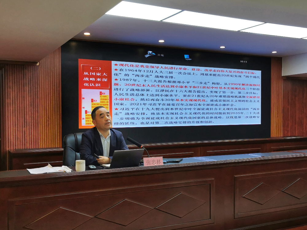 本次报告会特别邀请江门职业技术学院党委书记、市委宣讲团成员张忠林同志作专题宣讲。张忠林围绕党的二十届四中全会的重大意义与重要地位展开系统阐释,紧扣“十五五”时期发展的指导方针、主要目标、战略任务及重大举措,深入解读了以全面深化改革开放推动高质量发展的实践路径。同时,他就如何学深悟透、贯彻落实《习近平谈治国理政》第五卷的重要意义进行了深入浅出的剖析。