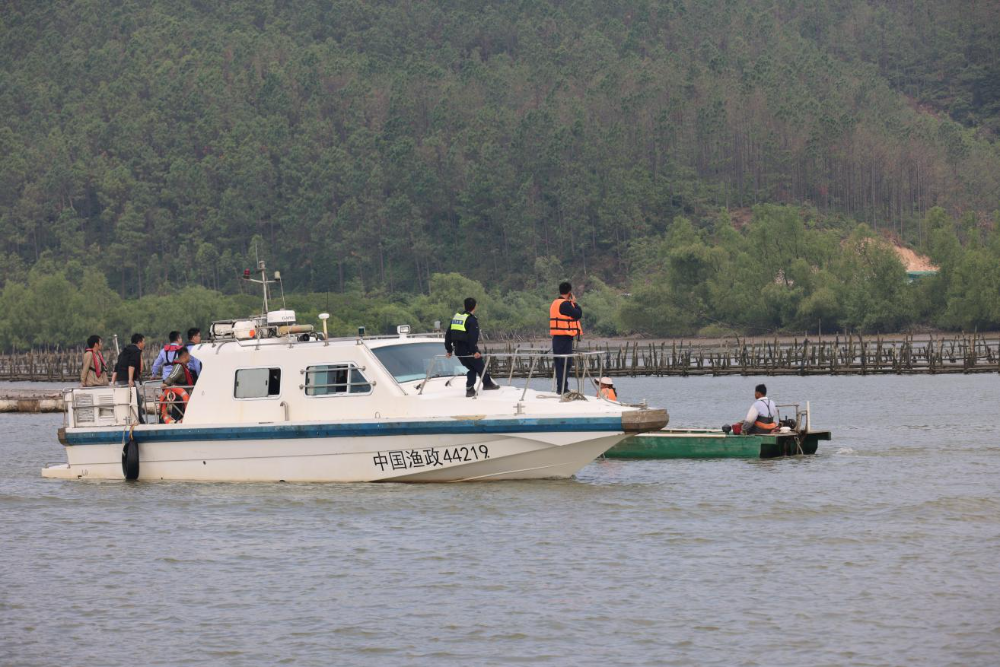 11月19日,市海洋综合执法支队渔业执法科(机动大队)出动粤海洋执法66023艇到蓬江区棠下、潮连等地开展水上执法巡航行动,重点打击临水作业不按规定穿着救生衣行为。