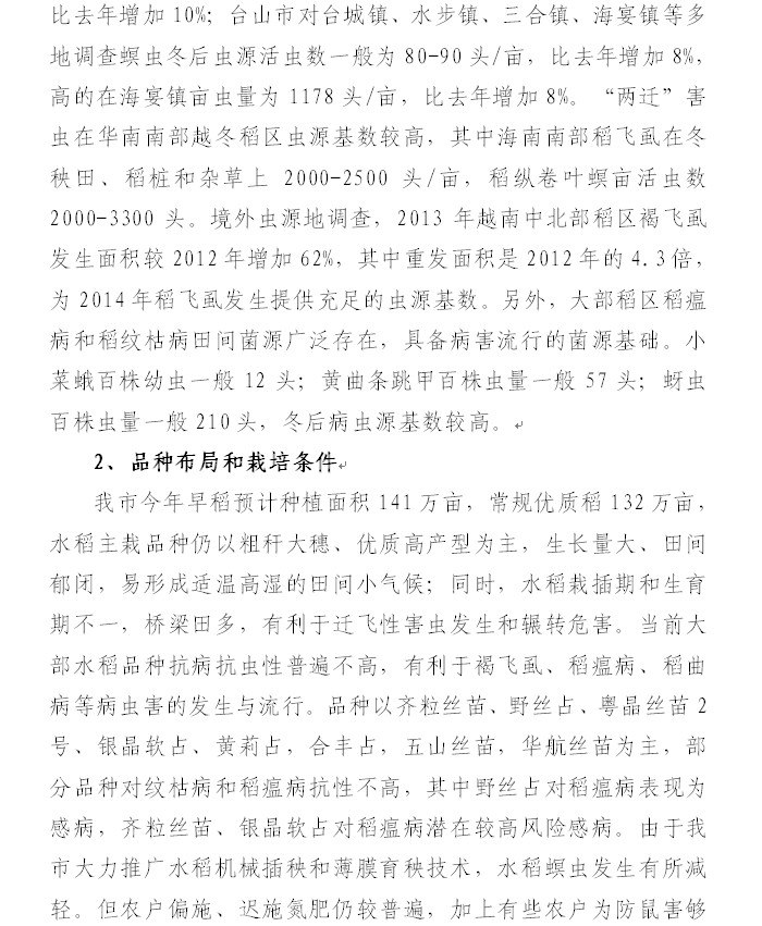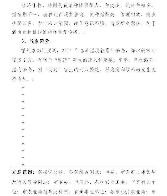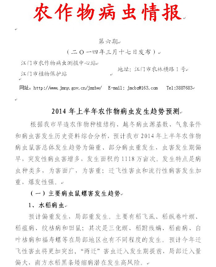 2014年上半年农作物病虫发生趋势预测(农作物病虫情报第六期)