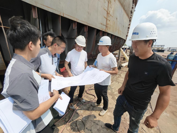 4月21日,市海洋综合执法支队渔船渔港监督科到台山市大江镇渔船建造企业开展渔船检验工作。