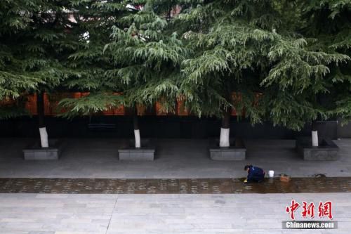 12月7日,侵华日军南京大屠杀遇难同胞纪念馆内的工作人员擦拭幸存者脚印铜板路。