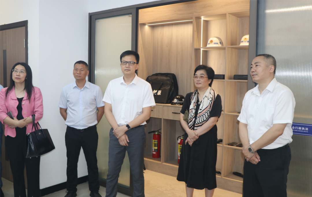 调研组一行参观考察了白沙街道综合行政执法办公室执法办案办公区,认真听取白沙街道工作人员的情况介绍,并不时询问行政调解室、询问室、法制审核室等功能室设置细节、交流意见,认真查看规范化建设指引、“导师制”培训等相关资料,并给予一致肯定。