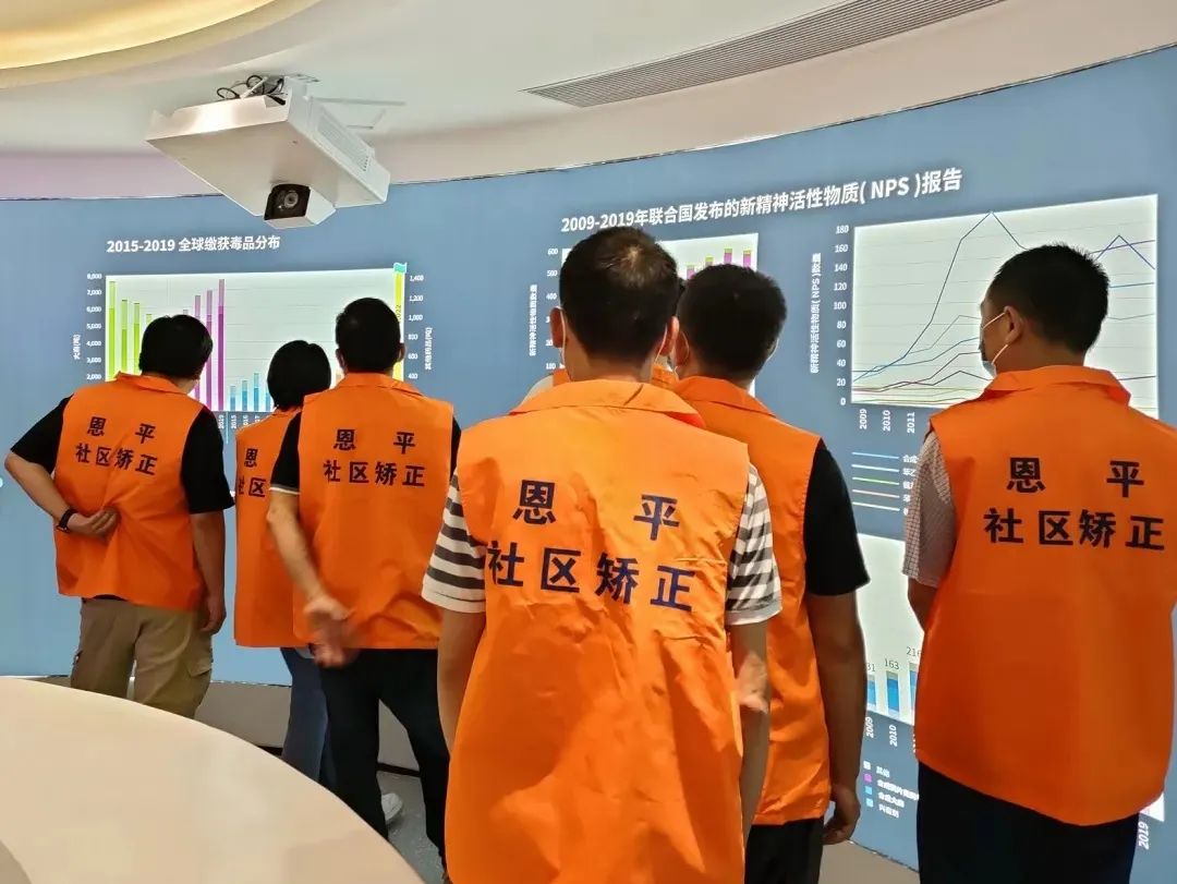 恩城司法所联合禁毒办等部门开展禁毒教育活动,组织社区矫正对象到恩平市禁毒教育基地参观学习,直观感受毒品仿真模具、浏览禁毒宣传墙、阅读禁毒书籍,并通过讲解员科普《禁毒法》、讲解吸食毒品的危害、宣讲我国禁毒工作成绩,传播“健康无毒、绿色人生”的生活理念,为社区矫正对象顺利回归社会打好禁毒“预防针”。