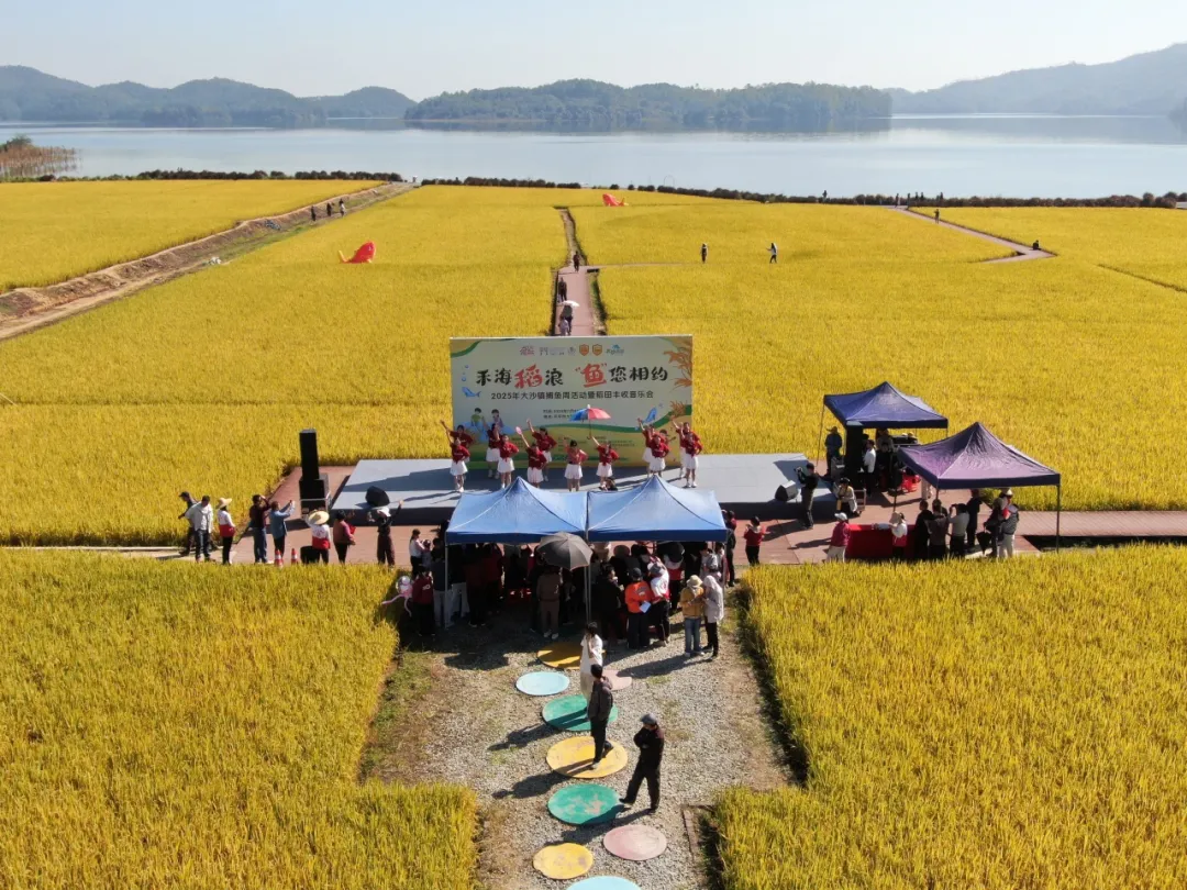 伴随着初冬暖阳的照耀和游客们的热情陪伴,“禾海稻浪,‘鱼’您相约”2025年大沙镇捕鱼周活动暨稻田丰收音乐会于11月29-30日在大沙镇大塘面村圆满举办,共同创造了一场关于稻田、捕鱼还有音乐的多重盛宴。