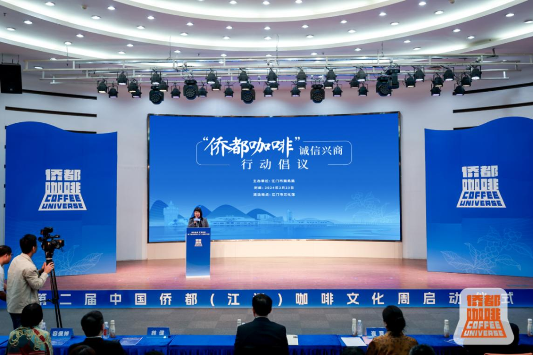 2月23日,市商务局邀请江门市商业协会咖啡专业委员会主席汤锦卿,在江门市文化馆发起了“侨都咖啡”诚信兴商行动倡议,呼吁我市广大咖啡从业者以诚信兴商为基石,提升侨都咖啡品质,弘扬侨都咖啡文化,扩大侨都咖啡消费。