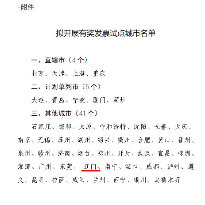 江门入选全国有奖发票试点城市公示名单!