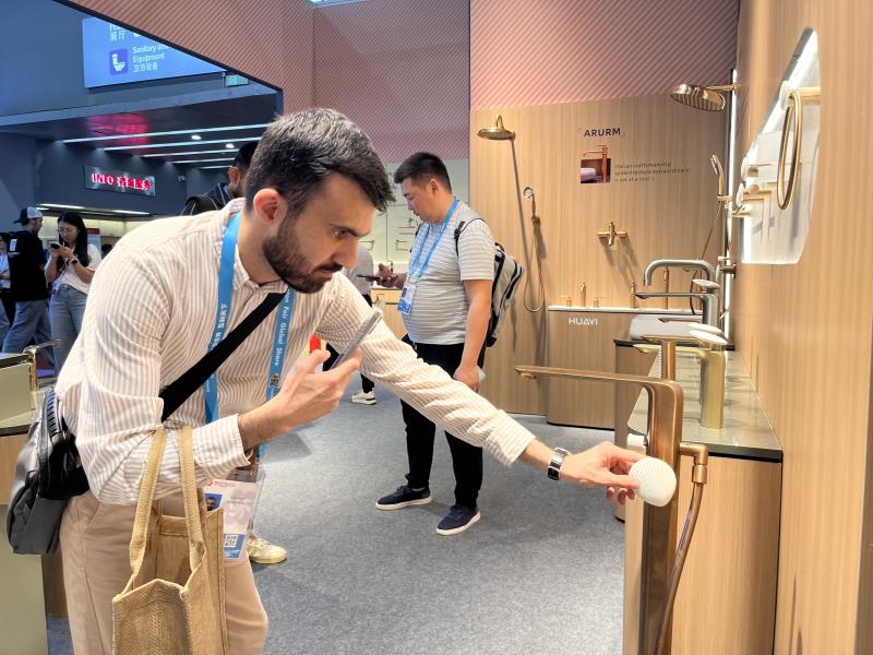 “我们带来近十个新系列、七八十款新品,外观和功能全面升级,既紧跟全球潮流,也支持客户定制。”华艺卫浴国际营销部客户经理李佩婷介绍,企业还带来了全新推出的皂液龙头,前端集成水柱、花洒两种出水模式,轻轻一按能均匀喷出洗洁精泡泡,台下隐藏式布管让台面更整洁,“一站式”解决厨房清洗难题,吸引众多客商咨询。