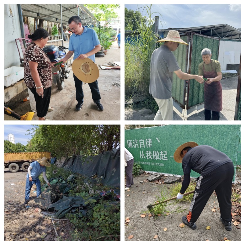凝聚合力,构建协同“防护网”。本次攻坚行动,我中心还重点聚焦临时利用地块,实行“分类管护、联动发力”:对有管护主体的储备土地,深入开展防疫检查,向125户储备土地临时利用人开展入户宣传,派发灭蚊物资与防疫手册,指导督促其落实“门前三包”责任,共同参与灭蚊防疫;对自行管护的储备土地,组织中心全体人员开展拔除杂草、清理垃圾等爱国卫生运动,累计参与75人次,清理卫生死角26处,形成“全员参与、群防群控”的防控氛围。