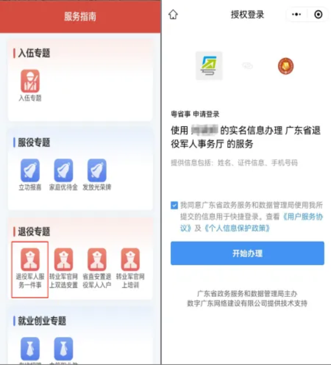 (二)线上办理渠道。电脑端:访问广东省政务服务网(https://www.gdzwfw.gov.cn/)微信人脸识别登录申请办理。手机端:访问微信小程序“粤省事”人脸识别登录。访问“退役军人服务专区”线上申请办理。