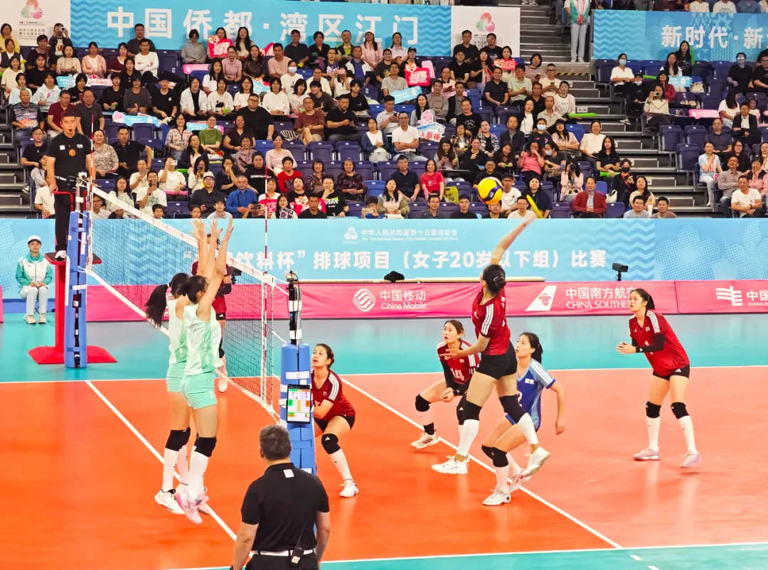 11月10日,第十五届全国运动会排球(20岁以下组)比赛在广东江门体育中心正式拉开战幕