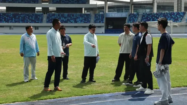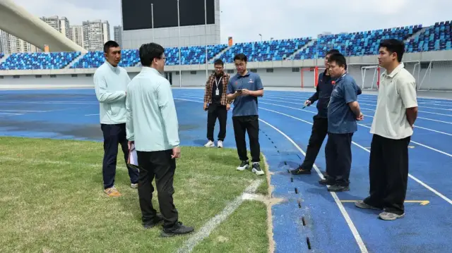 江门体育中心相关负责人全程陪同检查,并与专家组进行了深入交流。此次核验不仅是一次场地的检验,更是一次难得的学习与提升机会。