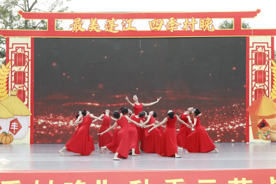 江门本地优秀文艺团体、“我要上‘村晚’”晋级团队展演舞蹈《醉春风》、旗袍秀《梨花颂》。