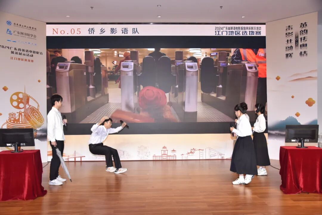 10月27日下午,由广东省立中山图书馆、广东图书馆学会主办,江门市图书馆、江门市图书馆学会承办的2024广东省英语电影配音风采展示活动(江门地区选拔赛)在万众瞩目中拉开序幕。来自江门市各公共图书馆、市内高校、中小学所选送的34强队伍齐聚江门市图书馆南楼报告厅上演巅峰对决,用声音再现经典,呈现了一场高手云集的视听文化盛宴。