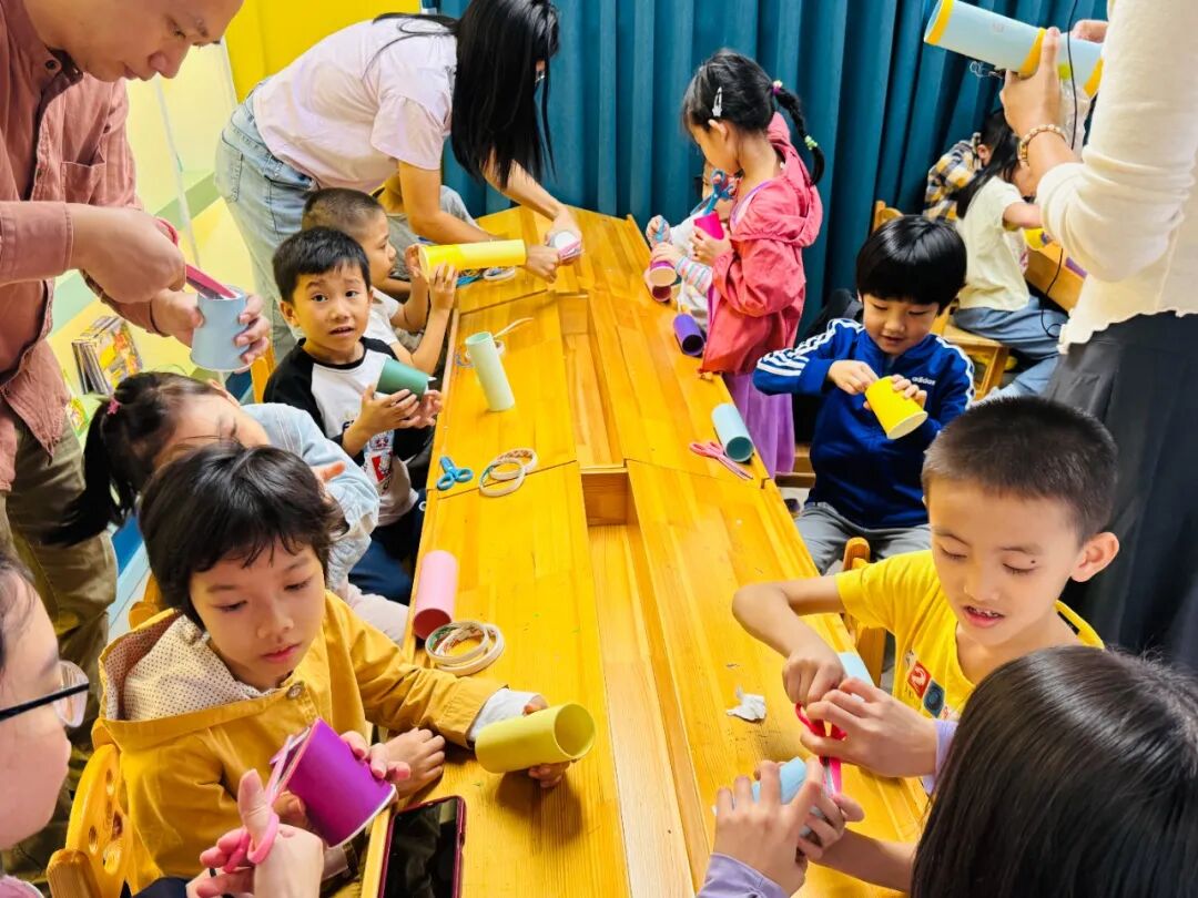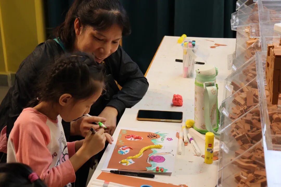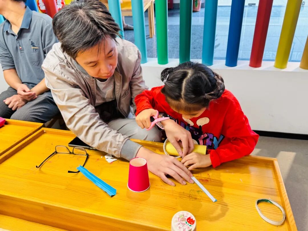 精彩讲述之后,手工制作环节如同一股清新的风,吹进了孩子们的心田。在家长的陪伴和帮助下,孩子们的小手灵巧地翻飞着,彩纸在他们的手中逐渐变成了形态各异的作品。这一环节不仅激发了孩子们的创造力,还让他们在动手实践中体会到了无尽的乐趣。