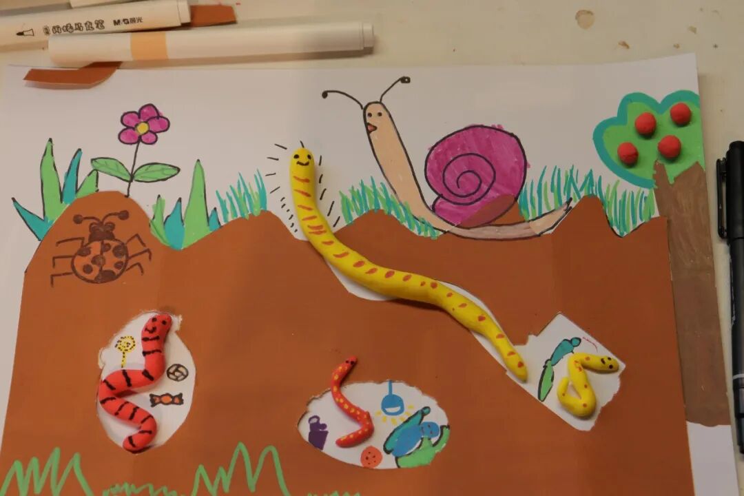 为了延续孩子们对绘本的热情,我们特别设计了虫子手工环节。孩子们在家长的陪伴下,利用彩笔、轻黏土等材料,创作出了属于自己的“超级虫子”。