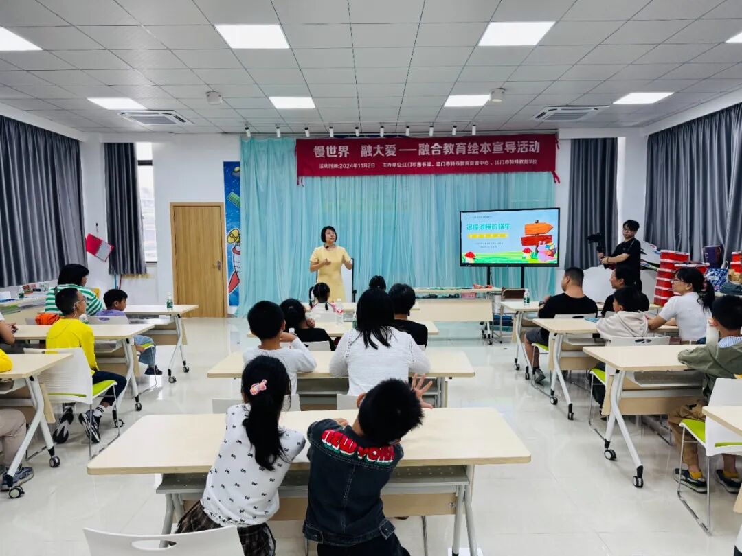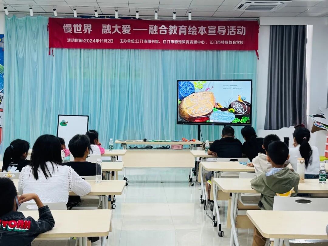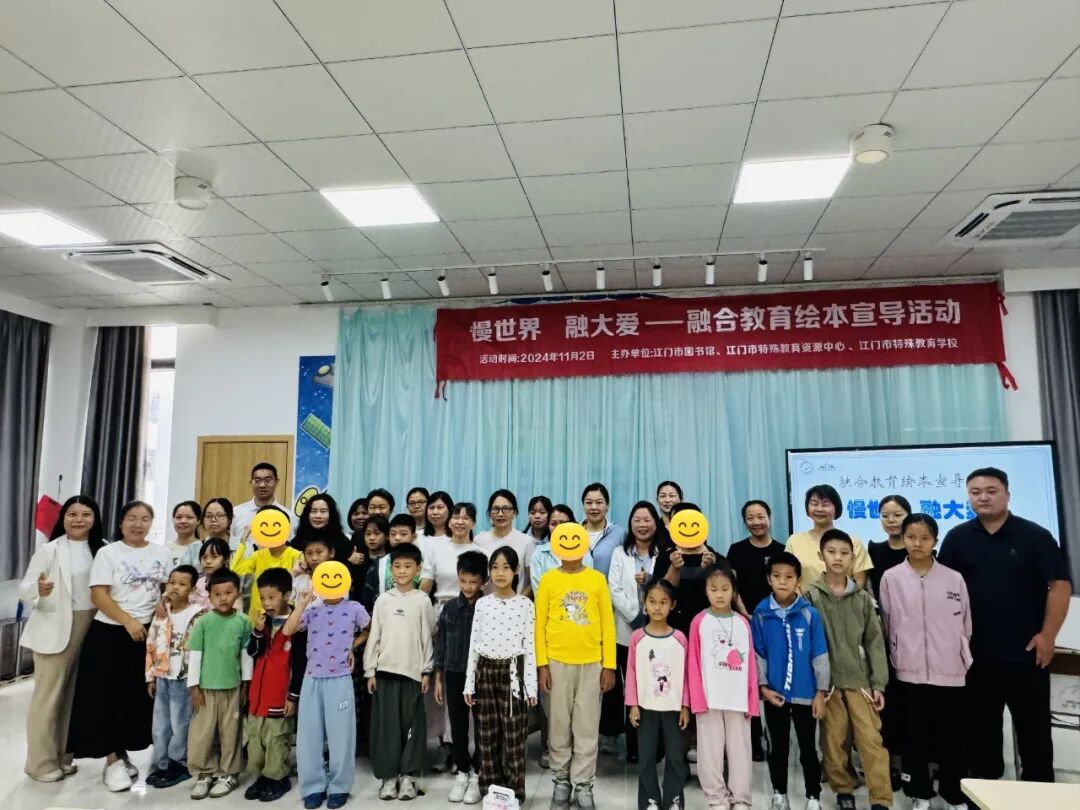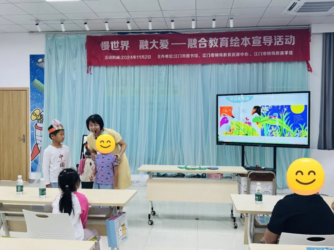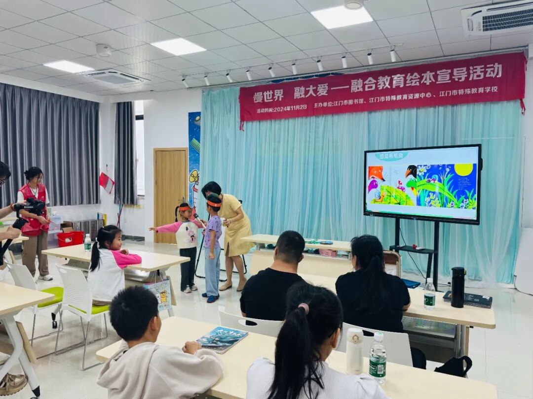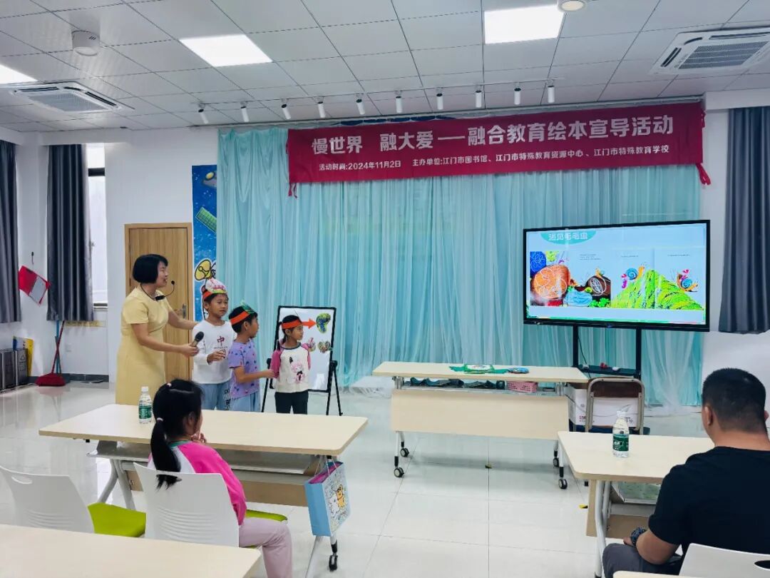 2024年11月2日上午,江门市图书馆联合江门市特殊教育资源中心、江门市特殊教育学校共同举办了”慢世界 融大爱“——融合教育绘本宣导活动。江门市图书馆副馆长骆红琴、江门市特殊教育学校专职副书记李兆、江门市特殊教育资源中心教师代表、江门市蓬江区陈白沙小学学生代表、特殊儿童代表及家长等四十余人到场参加。
