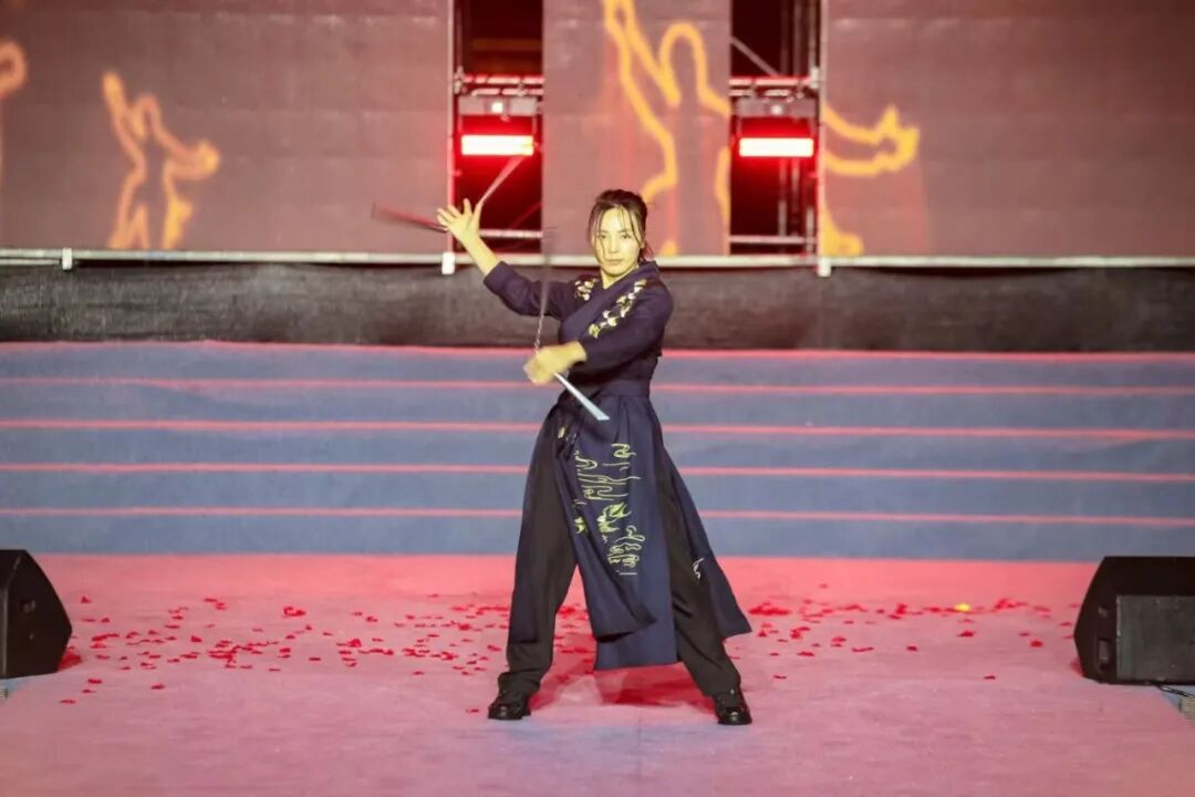 我市王氏棍武家族表演的《棍舞雄风》呈现了舞旗、双节棍套路、焰火双节棍以及双节棍击爆彩球、击碎苹果、击飞纸牌等精彩“绝技”,一招一式都蕴含着中华武术的卓越与精巧,博得现场观众阵阵喝彩和掌声。该节目让观众在欣赏震撼演出的同时,深刻感受到了中华武术的博大精深和无限魅力,也生动展现了中华优秀传统文化薪火相传的蓬勃生机。