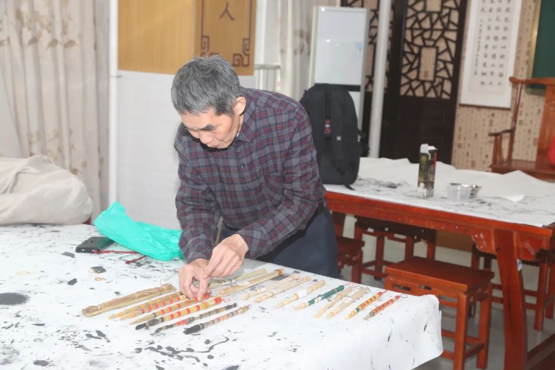 茅龙笔公益培训班则采取双师轮流上课的形式,由中国当代书画名家协会会员、江门市书法家协会会员张成富与陈德云老师每周交替进行。书法教室内,同学们在张老师的讲解示范下体验了一次探索茅龙笔的奇趣之旅,初步了解了茅龙笔的文化背景、形制类别及制作工艺等知识。培训现场欢声笑语不断,气氛温馨而又热烈。