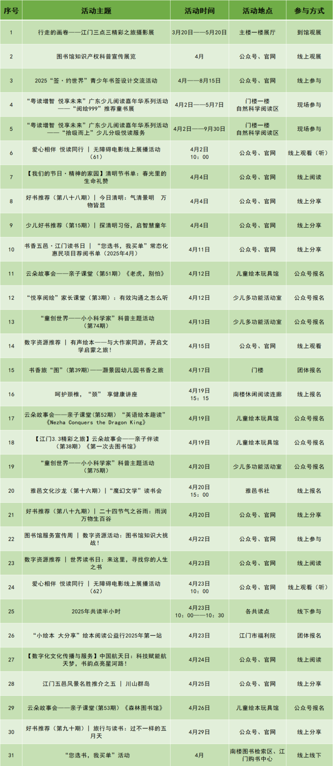 书香四月,阅见世界 | 江门市图书馆四月文化活动