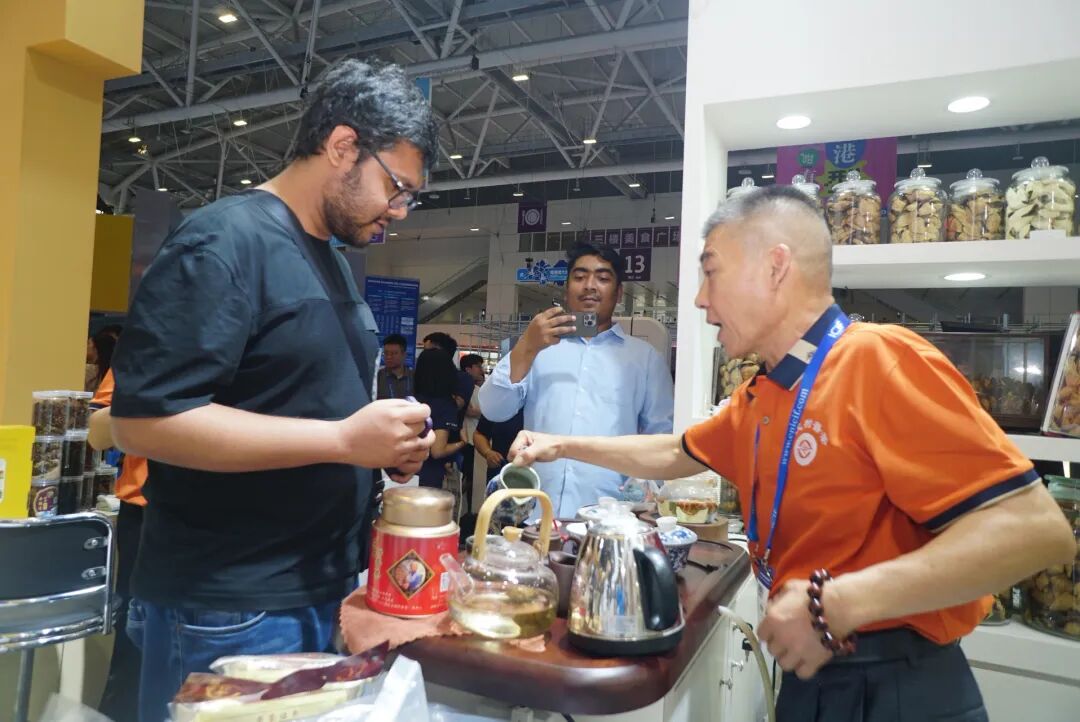 省级非遗项目罗氏柑普茶制作技艺的第六代传承人罗沛贤是深圳文博会的常客。与往年一样,他冲泡的柑普茶吸引了国内外众多客商和观众品尝。一位来自孟加拉国的客商拿起一杯柑普茶轻啜一口,清香的柑普茶让他大赞:“Very good(非常好)!”