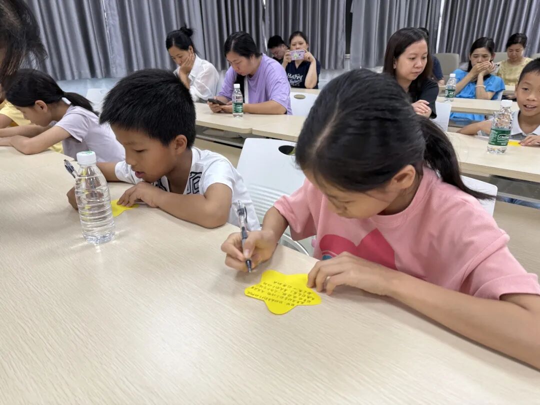 绘本故事后,老师引导孩子们思考:“小鼹鼠经历了温暖的一天,在写给奶奶的信里,它会写什么呢?”孩子们在星星形状的卡片上替小鼹鼠写下“给奶奶的信”,信里告知奶奶动物城并不可怕,它们都非常友好。
