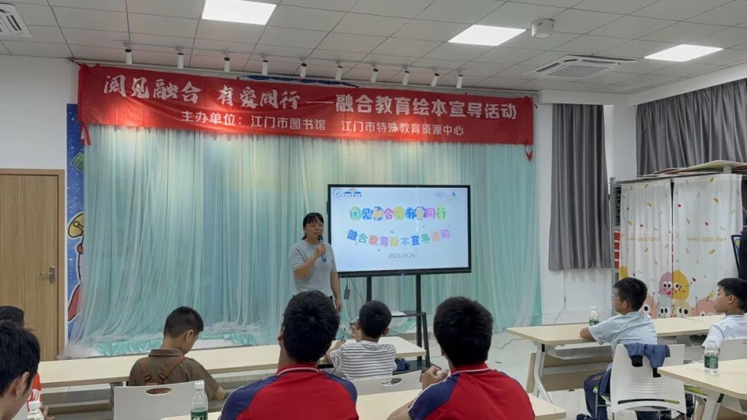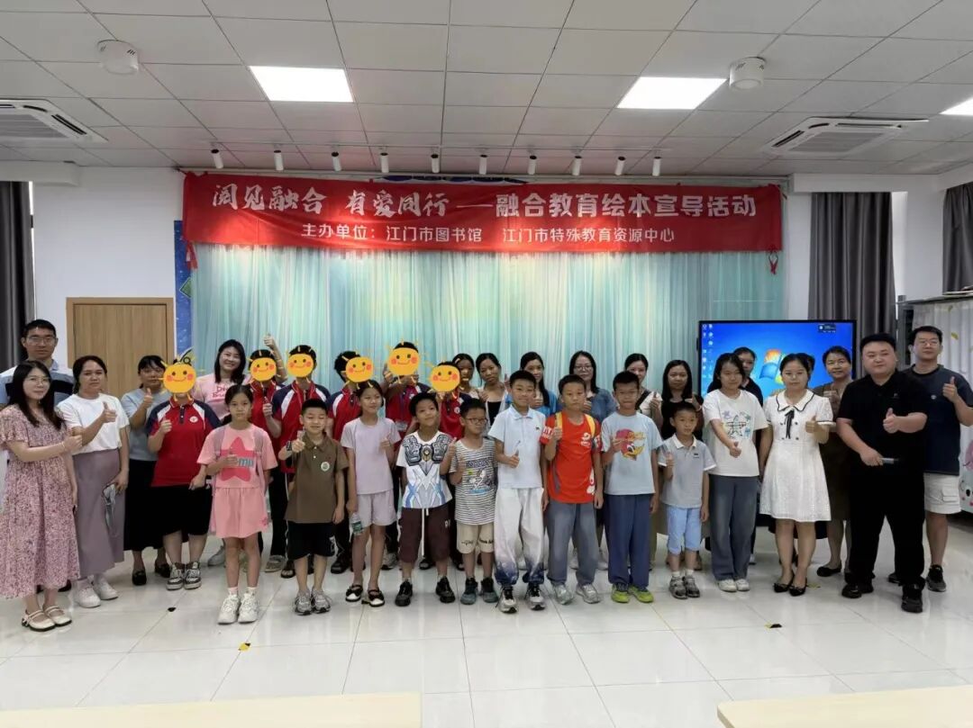 2025年5月24日上午,由江门市图书馆、江门市特殊教育资源中心、江门市特殊教育学校、江门市江海区特殊教育学校联合主办的“阅见融合,有爱同行”——融合教育绘本宣导活动,在江门市图书馆门楼四楼少儿多功能活动室顺利开展。活动吸引了江门市特殊教育资源中心教师代表、江海区特殊教育学校学生代表(6人)、陈白沙小学亲子代表(10组)及志愿者义工队共同参与,旨在通过绘本共读与互动体验,搭建理解与包容的桥梁,推动融合教育理念深入人心。