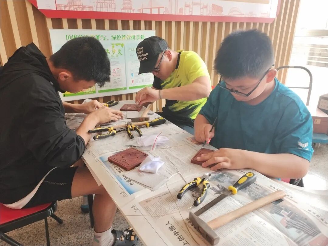 在中山古建筑陶塑瓦脊制作技艺体验课现场,何晓桦老师及助理梁老师其深入浅出地介绍了小榄非遗项目“古建筑陶塑瓦脊制作技艺”的传承背景、发展历程和文化内涵,并现场示范创作陶艺作品和传授制陶技艺。学员们跟随传承人分步操作:将特质陶土揉捻成细腻泥团,用竹刀在坯体上雕刻出卷草纹的起伏肌理,再以模具压印出瓦当的云纹轮廓。泥土是一种拥有造物般神奇魔法的天然材料,现场参与者在平凡的陶泥中发挥天马行空的想象力,通过一双双巧手打造,制出了一件件富有自己思想感情的半成品。