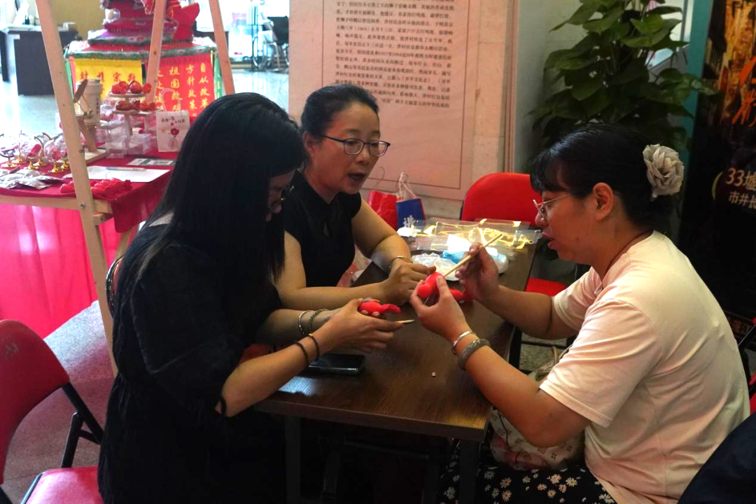 6月14日上午,江门市文化馆东门大厅热闹非凡,非遗互动体验市集盛大开启。现场搭建的非遗市集宛如一个传统文化的大观园,集中活态展演了新会葵艺、罗氏柑普茶制作技艺、礼乐梁氏传统木雕制作技艺、外海生恭鲤鱼手工艺品、东方绳结技艺、刘氏铜木镶嵌传统制作技艺6个非遗项目。