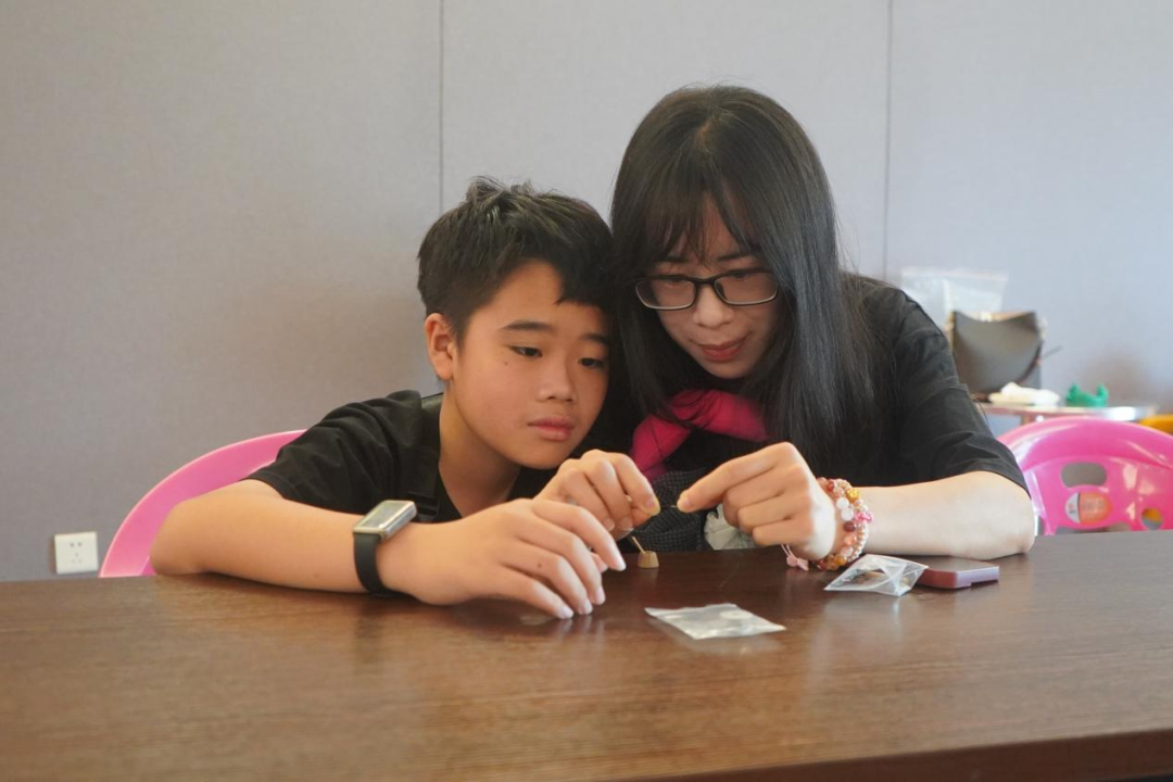 市级传承人周平辉老师首先讲解了这门技艺如何将玉雕、镶嵌、盆景艺术熔于一炉:“每片玉石花瓣都要按真花的经脉走向切割,再用银丝串联,让‘石花’也有呼吸感。” 周老师一边讲解制作步骤并示范制作技巧,学员们跟着老师的讲解动手操作,在此期间,周老师还会手把手指导学员帮助其完成制作。包铜线、串花叶、拧线、做花蕊、扎花、植盆,一道道复杂的工序后,学员们都制作出一朵朵美丽的玉石花。