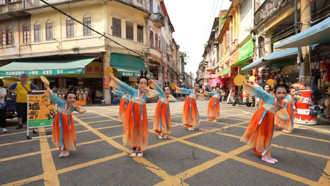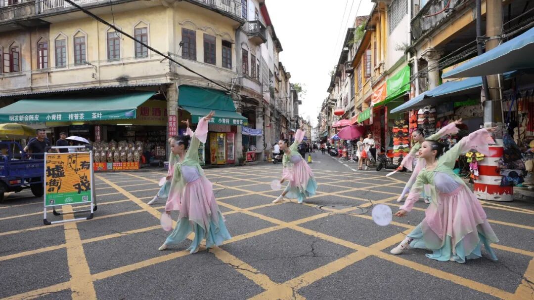 6月28日下午,由江门市文化广电旅游体育局指导、江门市文化馆精心策划的“江门三点三精彩之旅•墟街有戏”,为市民、游客献上了一场穿越古今的舞蹈盛宴,明媚了初夏独有的“三点三”时光。
