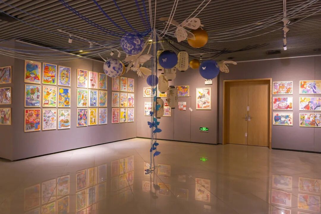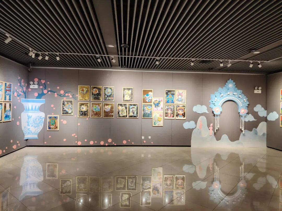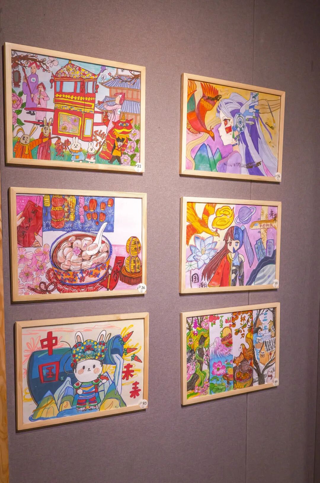 移步一楼展厅,一幅幅色彩斑斓、构思奇崛的作品正静候观者——从气韵生动的国画、油画、水彩,到将传统纹样巧妙融入狮头、帆布袋、油纸伞的文创设计,侨乡少年们以独特视角诠释“国潮”真谛,在方寸之间绘就传统与现代的惊艳交响。