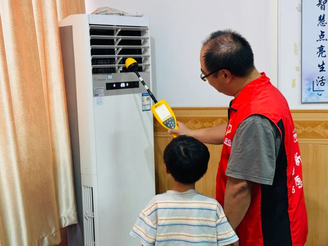 绘本故事告一段落,来自广东省江门生态环境监测站的监测讲解员紧接着登场,带来了孩子们超感兴趣的电磁辐射科普小课堂。针对大家平时好奇的电磁辐射环境问题,讲解员以深入浅出的语言给孩子们作了详细的讲解:从电磁辐射的基本概念,到家里常见的手机、空调等电器都是辐射来源,再到环境安全的小知识,一个个知识点娓娓道来,让孩子们听得津津有味。随后,讲解员还现场演示起电磁辐射检测仪的操作 —— 对着手机测一测,凑到空调旁看一看,仪器上的数值随着检测对象变化不停跳动。孩子们的目光一下子被牢牢吸引,眼睛一眨不眨地盯着屏幕,时而发出 “哇” 的小声惊叹,一双双明亮的眼睛里满满都是对科学的好奇与向往,仿佛瞬间化身为小小的科学家,在探索大自然之外的另一个奇妙世界。