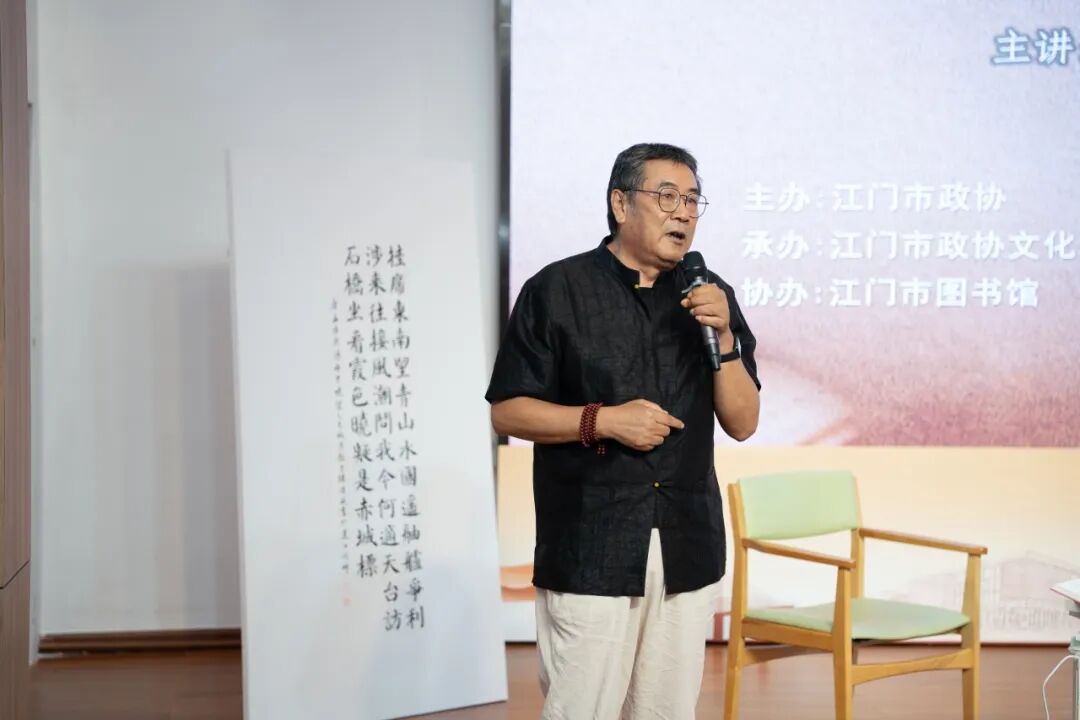 五邑大学文学院教授孟祥荣为大家分享了《新时代推动诗词创新发展的现实意义》。他结合当下时代背景,为唐诗注入了当代思考,探讨了在新时代如何让古代的诗词文化焕发出新的活力,引发了观众的深刻思考。