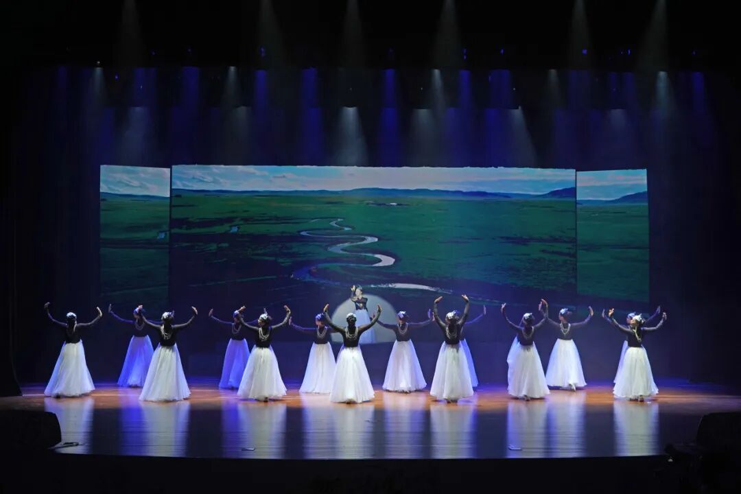 赏析会在集体舞《库马拉》的恢弘乐声中步入高潮。该作品以藏族音乐为基调,融汇多民族舞蹈元素,舞者们身着不同民族服饰翩然共舞,不仅呈现了藏、蒙、维、朝鲜等典型民族舞蹈语汇,更以艺术化的肢体语言诠释了中华民族多元一体、团结共融的深厚主题,展现出一幅“各美其美、美美与共”的中华民族文化画卷,为整场晚会画上了圆满的句号。